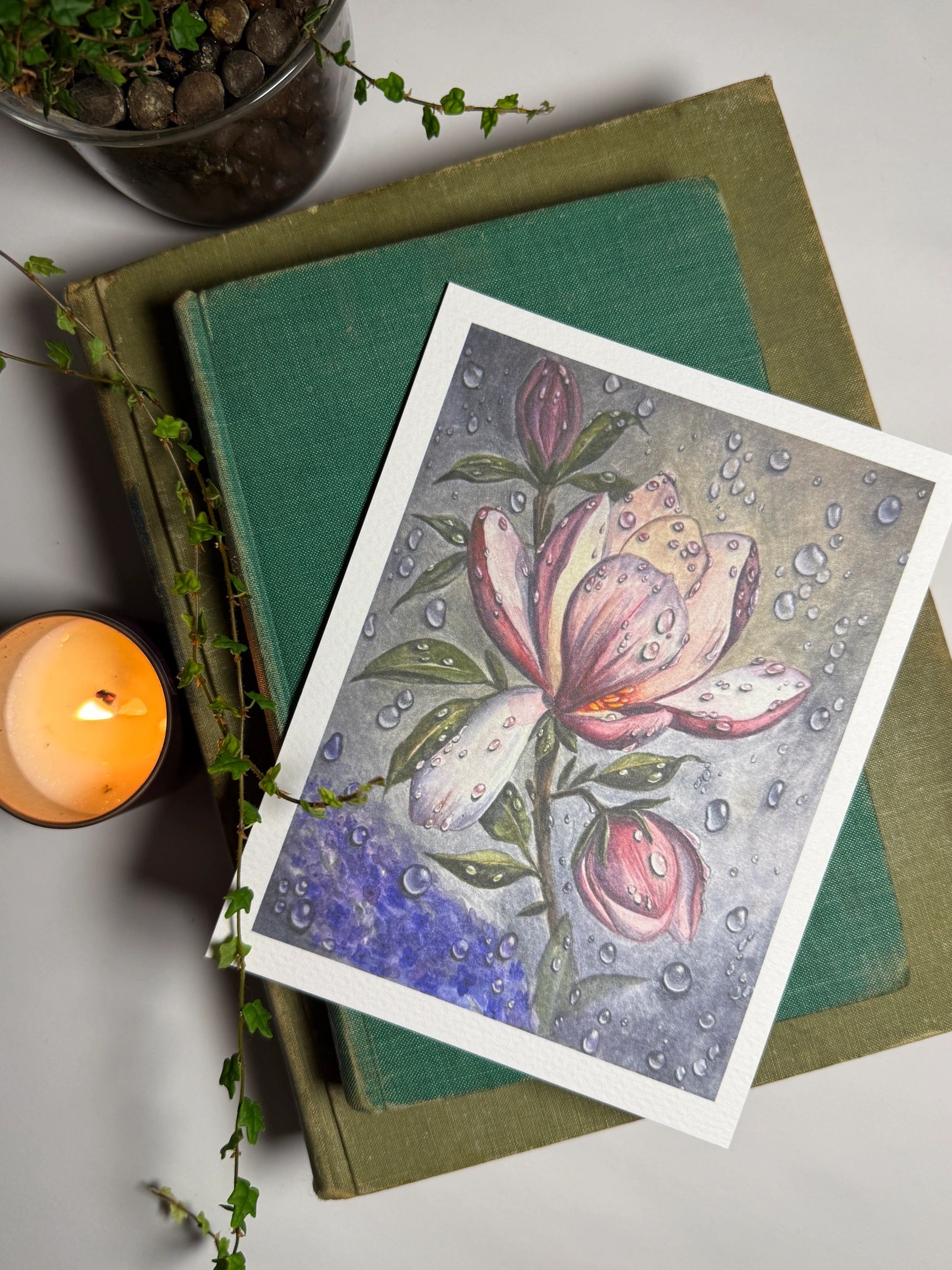 If you know me, you know that I devour books and audiobooks.. so, while I paint, I listen. All of the extras that are included in your delivery will be inspired by the painting and those books!